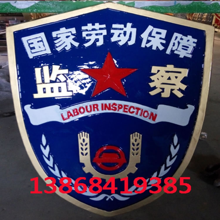 | 安裝方式 | 黑龍江勞動保障監察徽-小徽章背面都配有穿掛耳孔,釘子釘在墻上,再用穿鐵絲鋼絲,適合安裝在辦公室/會議室會場等。大徽后面為膨脹螺絲孔,安裝需要定做鐵架,鐵架固定墻面上后,再將徽章固定在鐵架上。玻璃幕墻也是需要鐵架方式安裝。 |